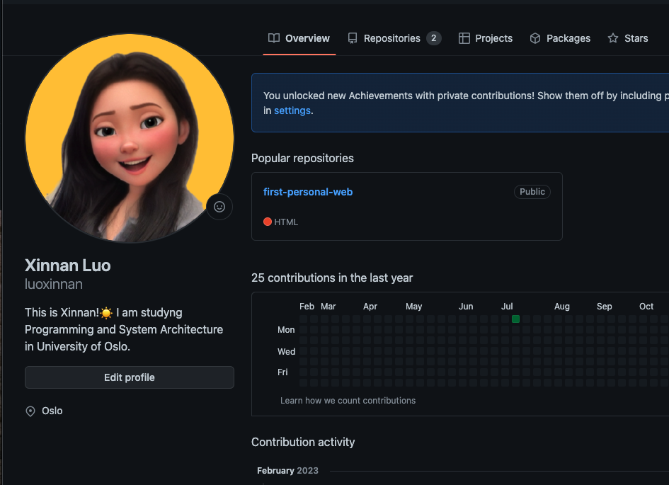 As a first-year student at the University of Oslo, I am pursuing a major in Programming and System Architecture.